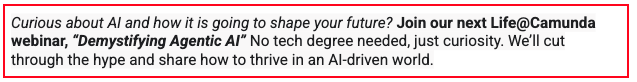 Camunda is the leader in enterprise agentic automation, orchestrating complex business processes, including high-value knowledge work, across agents, people, and systems. By creating production-ready, enterprise-grade agents with built-in governance, Camunda uniquely delivers trusted AI agents for business-critical processes. Over 700 leading innovators like Atlassian, ING, and Vodafone, rely on Camunda to slash time-to-value from months to days, boost operational efficiency, and elevate customer experiences.